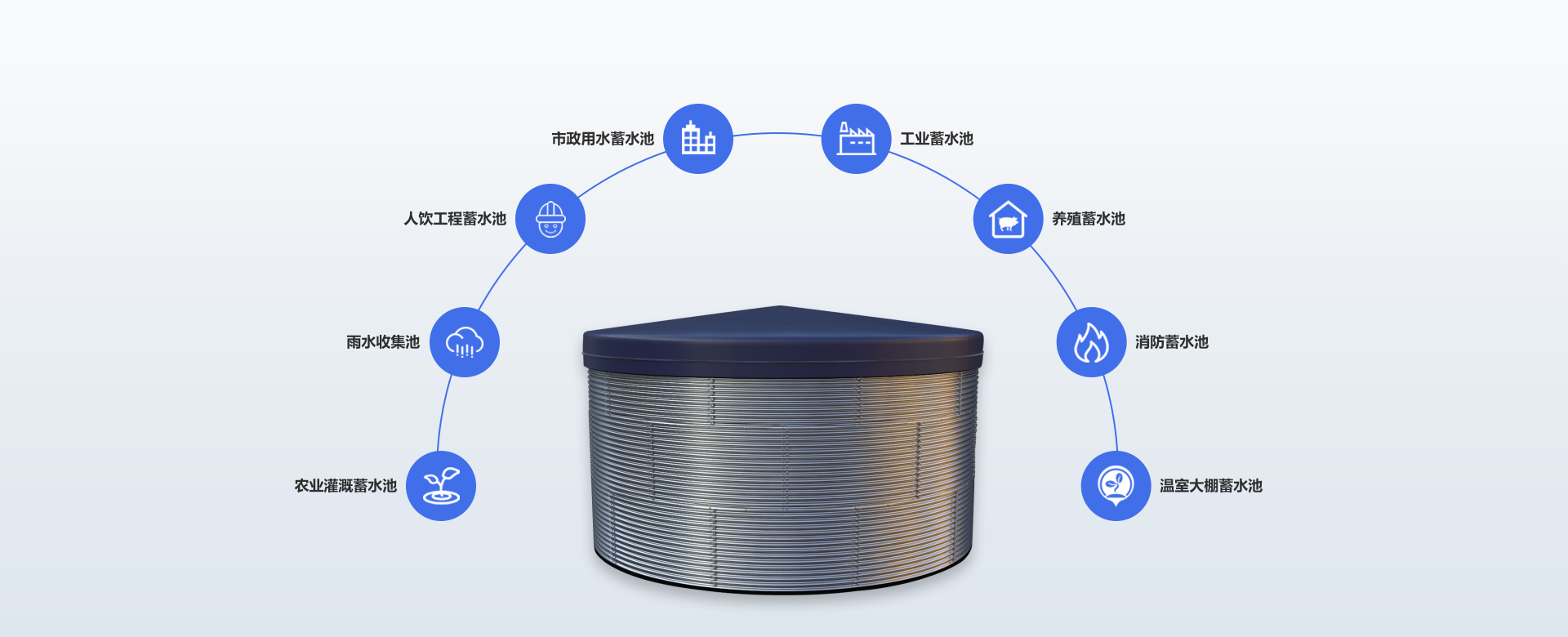 裝配式蓄水池罐體采用高強度波紋鋼,科學的力學結構設計受力更加均衡,雙層內膽杜絕漏水,更安全。